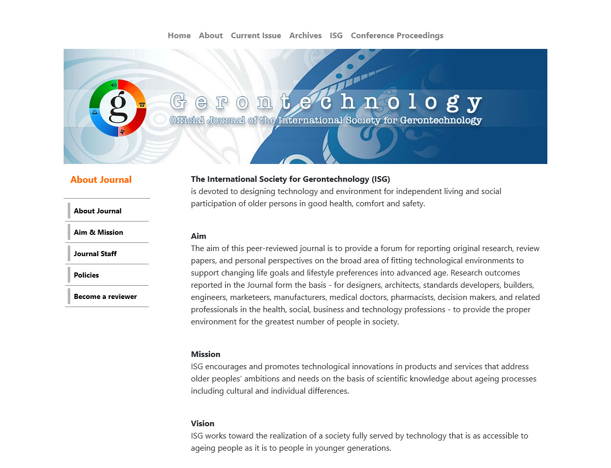 本論文は、国際ジェロンテクノロジー学会(ISG)が功績を讃えて選出する Grandmaster を中心に編まれる特別号に採択されました。